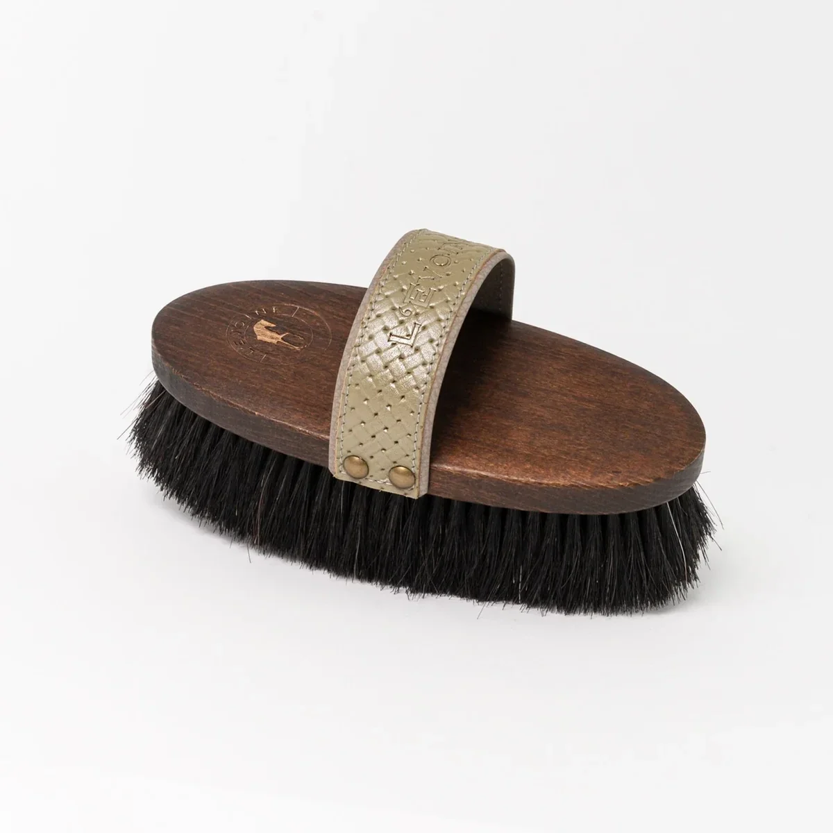 Das Herzstück der täglichen Pferdepflege - die Kardätsche. Diese robuste Pferdebürste von L'Evoine besteht zu 100 % aus festem Rosshaar und verbindet hervorragende Reinigungsergebnisse mit einer wohltuenden Massage. Schmutz wird effektiv aufgenommen und auch das letzte Staubkorn entfernt.