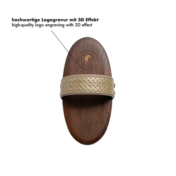 Die Kardätsche kann mit mildem Babyshampoo gereinigt werden. Alle Pferdebürsten werden von Hand in Deutschland gefertigt.