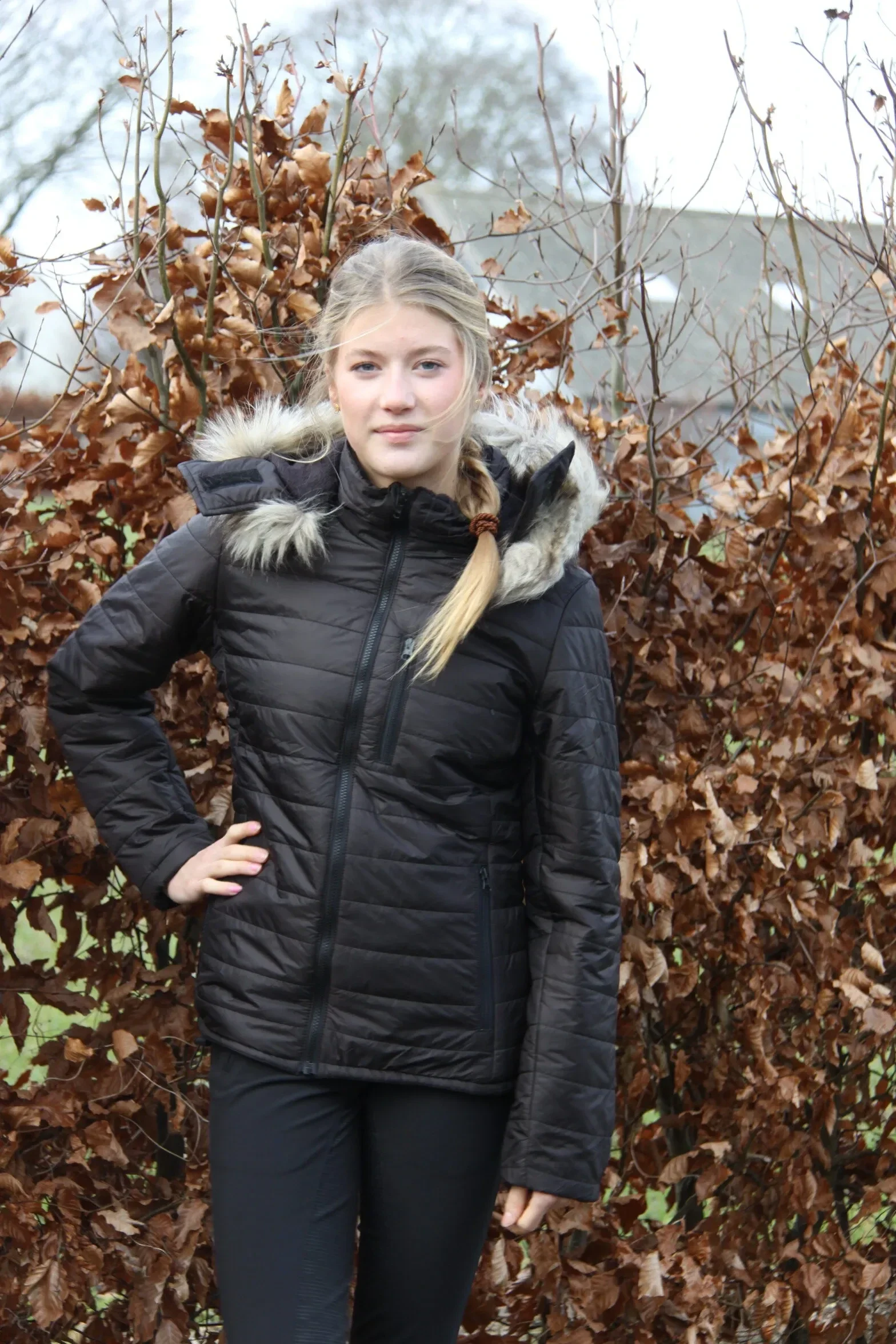 Eine schöne, leichte doch wirklich warme Jacke mit Kapuze und Kunstpelzbesatz.